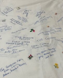 We proudly display our tablecloths at all of our Sisterhood events.