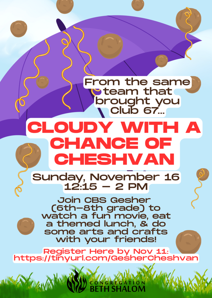 CBS Gesher has one of the largest memberships in the Chicago region and is open to Jewish 6th through 8th graders. We sponsor 1-2 programs a semester, both in and out of the building, and we also strongly encourage participation in Regional Conventions including various weekend-long KINNUSIM (conventions).
