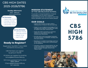 Do you know that there is a program for 8th – 12th high school students at Congregation Beth Shalom?